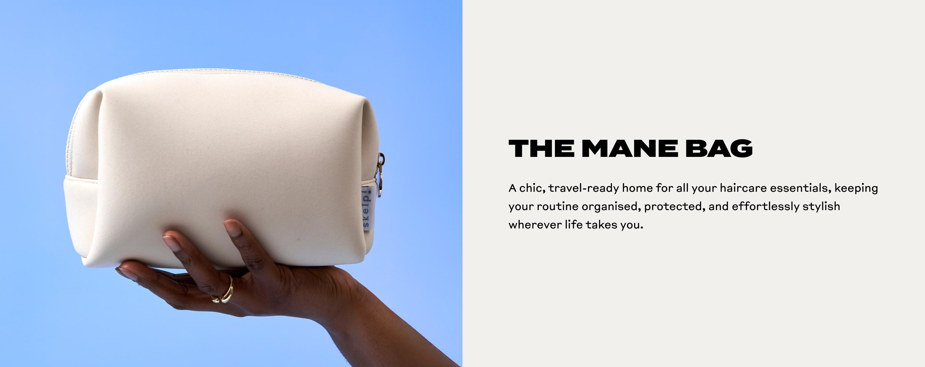 The Mane Bag is your go-to for keeping your haircare and beauty routine together, tidy, protected, and ready to travel. Made from soft-touch neoprene with a smooth matte finish and gold detailing, it looks as good as it feels: effortless, a little luxe, and built to last.