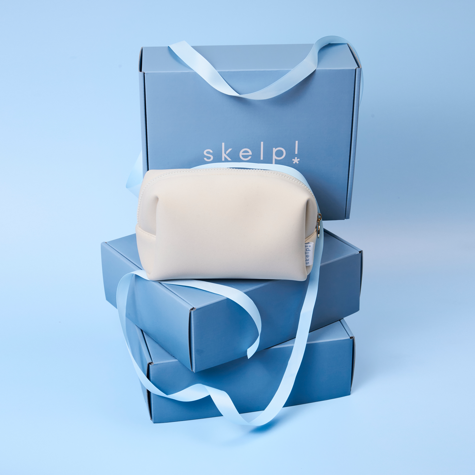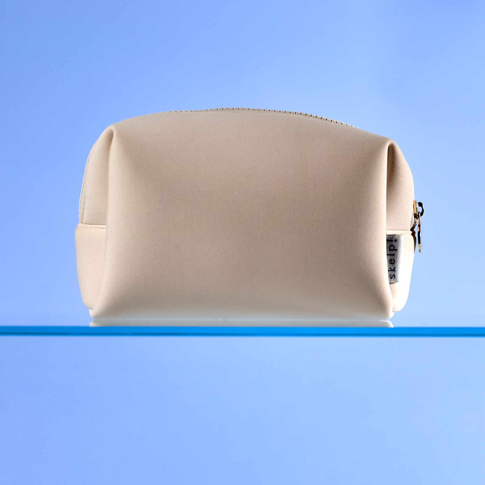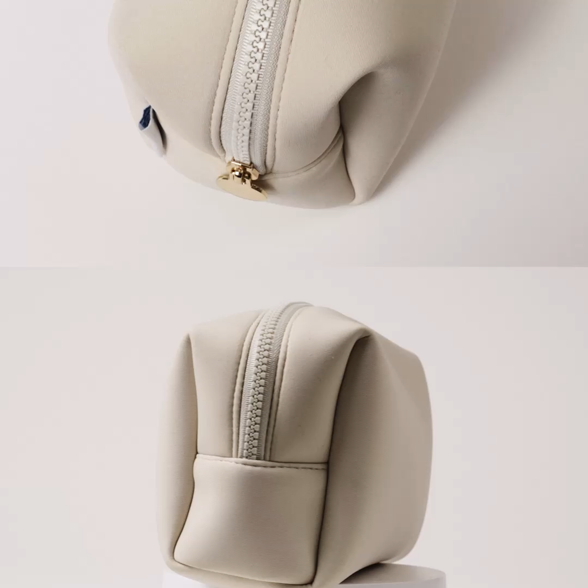 The bag uses neoprene for the main body, with a soft‑touch matte finish and gold detail. Neoprene is flexible but durable, helping protect products inside from impact. The matte finish hides wear better than glossy materials, and the gold detail adds both style, meaning the bag won’t just look good, it’s built to last.